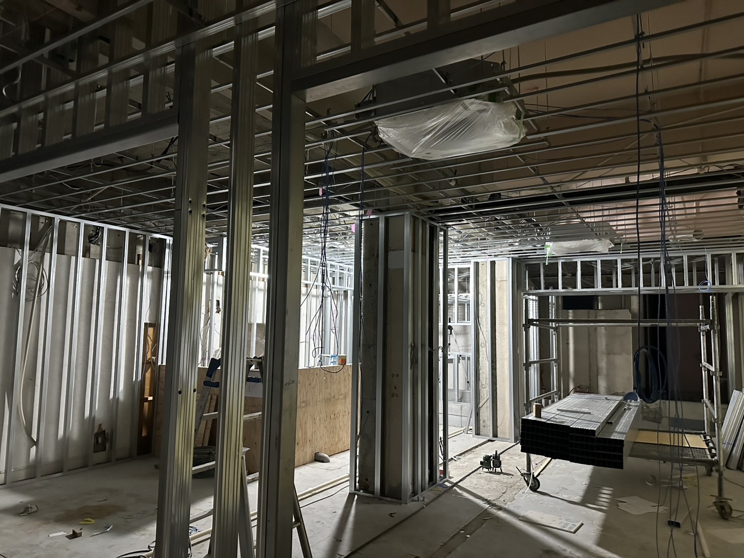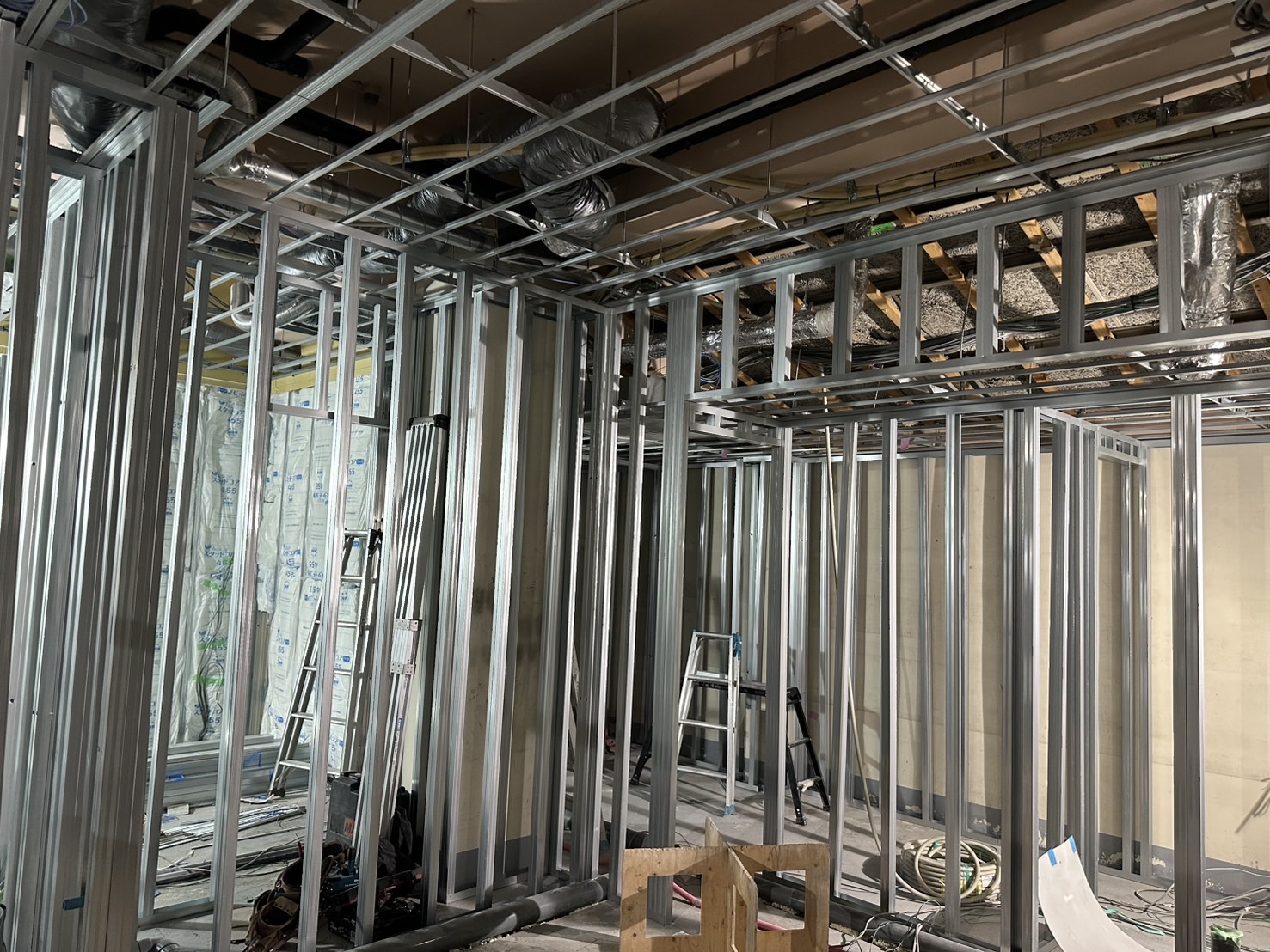 大阪府堺市にて店舗改修工事(軽天下地各種ボード貼り)をさせて頂きました。