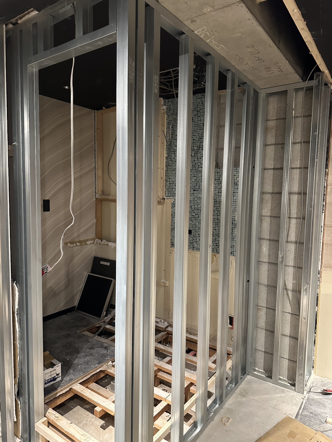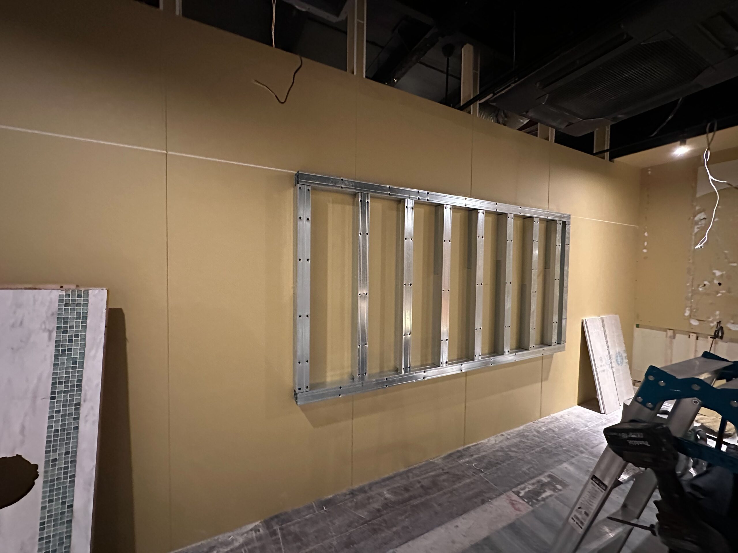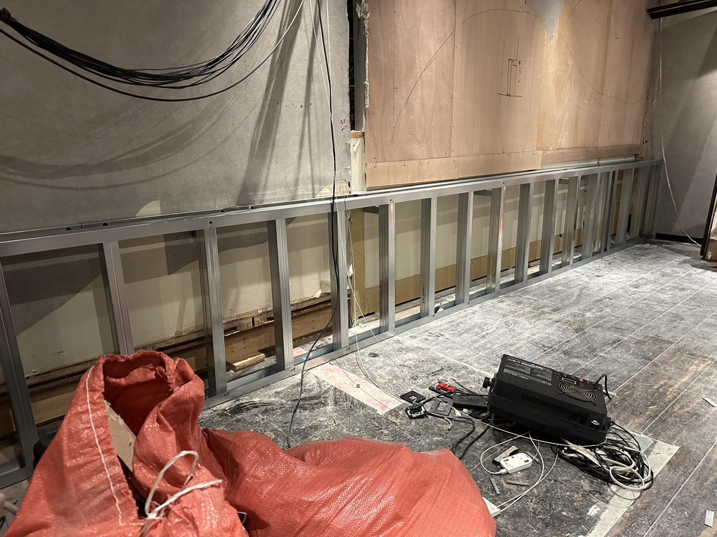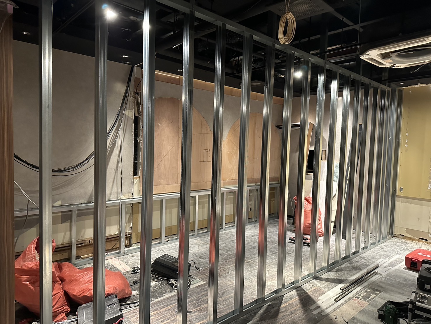 大阪府大阪市にて店舗改修工事(軽天下地+各種ボード貼り)をさせて頂きました。